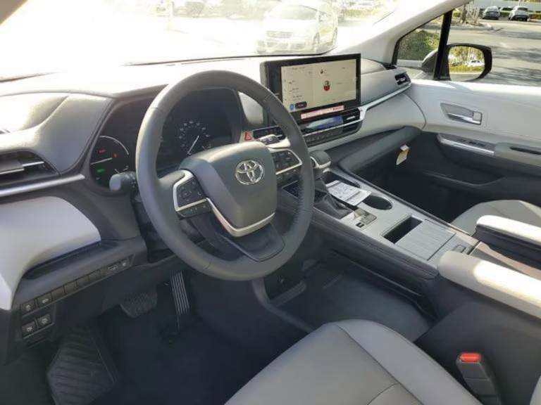 Lease A New 2025 Toyota Sienna XLE 7-Passenger, In Gray Interior With Silver Exterior, FWD, CVT, 2.5L I4, 36/36 City/Highway MPG, 17 Alloy Wheels, 3rd row seats: split-bench, 4-Wheel Disc Brakes, 8 Speakers, ABS brakes, Air Conditioning, Alloy wheels, AM/FM /SiriusXM Radio, Apple CarPlay/Android Auto, Auto High-beam Headlights, Auto-dimming door mirrors, Auto-dimming Rear-View mirror, Automatic temperature control, Axle Ratio: TBD, Brake assist, Bumpers: body-color, Compass, Delay-off headlights, Door auto-latch, Driver door bin, Driver vanity mirror, Driver's Seat Mounted Armrest, Dual front impact airbags, Dual front side impact airbags, Electronic Stability Control, Emergency communication system: Safety Connect (3-year trial), Exterior Parking Camera Rear, Four wheel independent suspension, Front anti-roll bar, Front Bucket Seats, Front dual zone A/C, Front fog lights, Front Heated Bucket Seats, Front reading lights, Fully automatic headlights, Garage door transmitter: HomeLink, Heated door mirrors, Heated front seats, Illuminated entry, Knee airbag, Lane Departure Warning System, Leather Shift Knob, Leather steering wheel, Low tire pressure warning, Occupant sensing airbag, Outside temperature display, Overhead airbag, Overhead console, Panic alarm, Passenger door bin, Passenger seat mounted armrest, Passenger vanity mirror, Power door mirrors, Power driver seat, Power Liftgate, Power moonroof, Power passenger seat, Power steering, Power windows, Radio data system, Radio: Toyota Audio Multimedia w/8 Speakers, Rear air conditioning, Rear anti-roll bar, Rear dual zone A/C, Rear reading lights, Rear side impact airbag, Rear window defroster, Rear window wiper, Reclining 3rd row seat, Remote keyless entry, SofTex Seat Trim (EA), Speed control, Speed-sensing steering, Split folding rear seat, Spoiler, Steering wheel mounted audio controls, Tachometer, Telescoping steering wheel, Tilt steering wheel, Traction control, Trip computer, Turn signal indicator mirrors, and Variably intermittent wipers. Recent Arrival! 2025 Toyota Sienna XLE Silver Metallic 4Door Passenger Van.