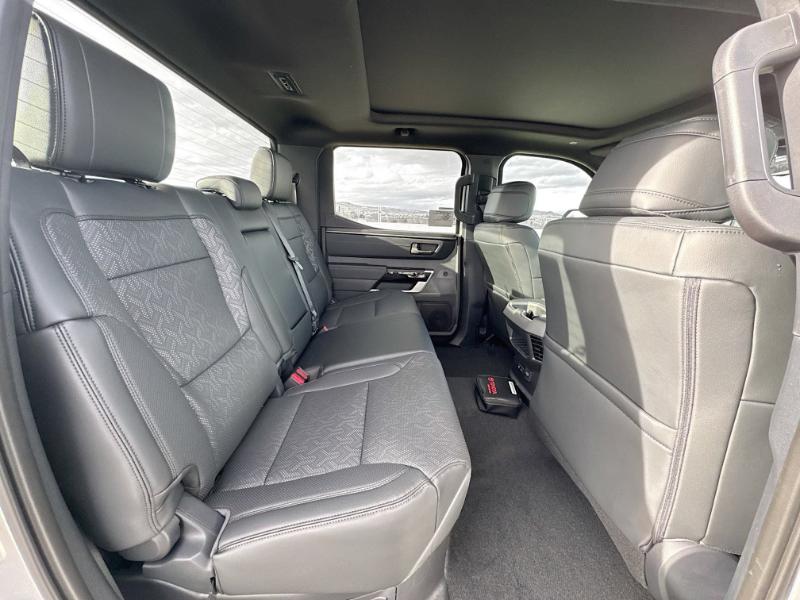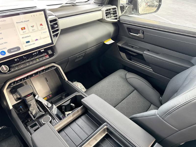 Lease A New 2025 Toyota Tundra Hybrid Limited In Celestial Silver Metallic Exterior With Black Interior, 10 speed automatic, Tundra I-FORCE MAX Limited, CrewMax 4x4, JBL(R) Premium Audio - 12-speaker JBL(R) Premium Audio, 50 State Emissions - 50 State Emissions, Spray-On Bedliner - Get the spray-on bedliner that's as tough and durable as your Tundra. Protect your bed from damage with this permanently bonded fixture. New, Toyota-exclusive softer material to keep items from sliding in the bed Toyota quality standards assure uniform thickness and a consistent texture Textured surface is designed to prevent cargo from sliding No lost cargo space, minimal added weight Features a Tundra logo Proprietary application method helps create a straight and crisp edge Fully warranted repairs completed quickly and easily at a Toyota dealership, Limited Premium Package - Limited Premium Package includes premium LED headlights, Trailer Backup Guide with Straight Path Assist (SPA), and digital rearview mirror, Limited Power Package - Limited Power Package includes Qi-compatible wireless smartphone charging, 400W/120V rear-seat AC power supply, 400W/120V bed-mounted AC power supply, and LED bed lights, PVM + BSM Outer Mirrors - PVM + BSM Outer Mirrors includes heated power outside mirrors with Blind Spot Monitor (BSM), Panoramic View Monitor (PVM), and LED turn signals, TRD Off-Road Package - TRD Off-Road Package includes 20-in. TRD Off-Road alloy wheels with all-terrain tires, TRD grille with body-color surround, 'TRD OFF-ROAD' bedside decal, off-road suspension with Bilstein(R) shocks, off-road front skid plate, mudguards, red TRD engine start button, TRD leather-wrapped shift knob, aluminum sport pedals, electronically controlled locking rear differential, Multi-Terrain Select (MTS), Crawl Control (CRAWL), Downhill Assist Control (DAC), and PVM+BSM black outside mirrors with Multi-Terrain Monitor (MTM) functionality, Panoramic Roof - Power tilt/slide panoramic roof with power sunshade, TRD Front Skid Plate - TRD Front Skid Plate, Spare Tire Lock - Add an extra layer of security for your spare tire with this precision-machined spare tire lock. Made from zinc-nickel-plated hardened steel for enduring structural integrity, Heated Leather-Wrapped Steering Wheel - Heated Leather-Wrapped Steering Wheel, All-Weather Floor Liners - Engineered to precisely fit your Tundra and made from durable, weather-resistant material. Liners feature channels to better hold moisture, Black Front Bumper Insert - Tundra front bumper insert is engineered to fit into the bumper to give your Tundra a custom look. Designed to fit permanently into existing bumper Easy to install Available in black or chrome, Hard Tri-Fold Tonneau Cover - Featuring a sleek trifold design, the hard tonneau cover is easy to install and remove for storage. Use it to deter theft of your gear and other valuables as well as protect them from inclement weather. Self-latching system allows for easy-cover operation and removal Advanced seal-and-channel system has drain hoses at the cab-end helping to keep water out of the bed Innovative mounting system allowing for full access to bed rails Uses Deck Rail System for installation and is weather resistant, Bed Step(R) - Get a leg up when loading or unloading the cargo in your truck's bed with a Bed Step(R). It bolts on with no drilling required, and tucks neatly under the rear bumper when not in use. Works with tailgate up or down Hands-free operation adjusts easily Lightweight, high-strength aluminum die-cast construction features a reinforced nylon step pad with ribbed, nonskid stepping surface 300-lb. load capacity Weather-resistant black anodized and Teflon(R) powder-coat finish for long-term durability Leaves hitch receiver free for towing.