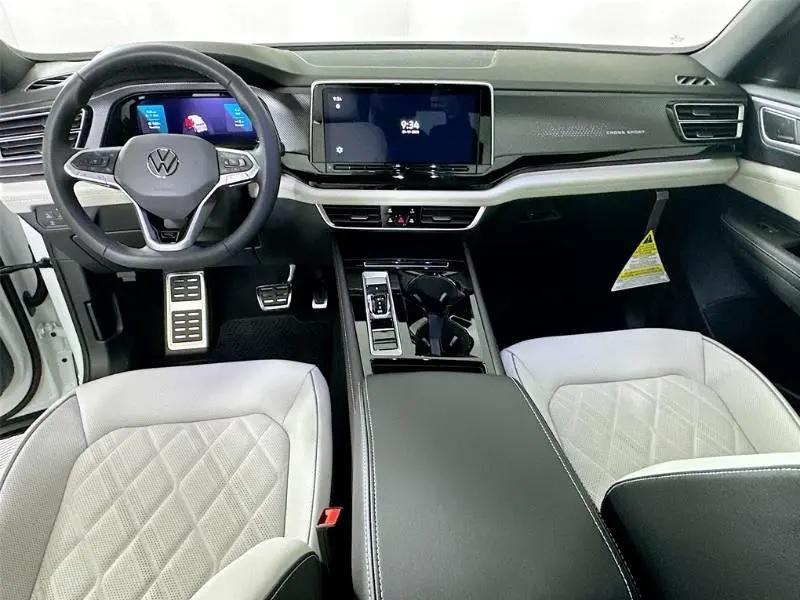 Lease A New 2025 Volkswagen Atlas Cross Sport 2.0T SEL Premium R-Line AWD 4MOTION In Opal White Pearl Exterior With Blonde Interior, HEATED AND COOLED SEATS, PANORAMIC ROOF, NAVIGATION, APPLE CARPLAY, ANDROID AUTO, REMOTE START, AWD Transmission: 8-Speed Automatic with Tiptronic w/Driver Selectable Mode, Delivers 26 Highway MPG and 19 City MPG! This Volkswagen Atlas Cross Sport boasts a Intercooled Turbo Premium Unleaded I-4 2.0 L/121 engine powering this Automatic transmission. Window Grid Diversity Antenna, Wheels: 21 2-Tone Machined Alloy, This Volkswagen Atlas Cross Sport Features the Following Options Valet Function, Trunk/Hatch Auto-Latch, Trip Computer, Travel Assist (semi-automated driving assistance, Trailer Wiring Harness, Tires: 21 All-Season, Tire Specific Low Tire Pressure Warning, Tailgate/Rear Door Lock Included w/Power Door Locks, VW Carefree Maintenance, VW Car-Net Safe & Secure 5-year Tracker System.