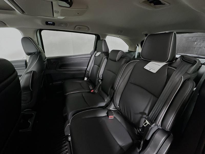 Lease A New 2025 Honda Odyssey Touring In Solar Silver Metallic Exterior With Black Interior, 19 Silver Alloy Wheels, 3rd row seats: split-bench, 4-Wheel Disc Brakes, 7 Speakers, ABS brakes, Adaptive Cruise Control: Adaptive Cruise Control (ACC) with Low-Speed Follow, Air Conditioning, Alloy wheels, Anti-whiplash front head restraints, Apple CarPlay/Android Auto, Auto High-beam Headlights, Auto-dimming Rear-View mirror, Automatic temperature control, Blind Spot Information (BSI) System warning, Brake assist, Bumpers: body-color, Compass, Delay-off headlights, Driver door bin, Driver vanity mirror, Driver's Seat Mounted Armrest, Dual front impact airbags, Dual front side impact airbags, Electronic Stability Control, Emergency communication system: HondaLink, Exterior Parking Camera Rear, Four wheel independent suspension, Front anti-roll bar, Front Bucket Seats, Front dual zone A/C, Front fog lights, Front reading lights, Fully automatic headlights, Garage door transmitter: HomeLink, Heated door mirrors, Heated Front Bucket Seats, Heated front seats, Illuminated entry, Knee airbag, Lane departure: Lane Keeping Assist System (LKAS) active, Leather steering wheel, Leather Trimmed Seats w/Piping, Low tire pressure warning, Memory seat, Navigation system: Honda Satellite-Linked Navigation System, Occupant sensing airbag, Outside temperature display, Overhead airbag, Overhead console, Panic alarm, Passenger door bin, Passenger seat mounted armrest, Passenger vanity mirror, Power door mirrors, Power driver seat, Power Liftgate, Power moonroof, Power passenger seat, Power steering, Power windows, Radio data system, Radio: 160-Watt AM/FM/HD/SiriusXM Audio System, Rear air conditioning, Rear anti-roll bar, Rear audio controls, Rear reading lights, Rear seat center armrest, Rear window defroster, Rear window wiper, Reclining 3rd row seat, Remote keyless entry, Security system, Speed control, Speed-sensing steering, Speed-Sensitive Wipers, Split folding rear seat, Spoiler, Steering wheel mounted audio controls, Tachometer, Telescoping steering wheel, Tilt steering wheel, Traction control, Trip computer, Turn signal indicator mirrors, Variably intermittent wipers.
